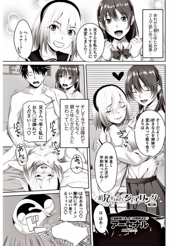 2019/10/05 20:39 【長編エロ漫画・第3話】兄をシェアする長女と三女!深夜になり勃起状態の兄!部屋に妹が入ってきた!次女が兄を求めにやってきた!驚く兄にキスして巨乳露出!乳首舐め弄る!パイズリフェラ射精!手マン掻き回し挿入おねだり!正常位で喘ぎマンコに中出し!朝まで連続SEX!【アーセナル】 近親相姦 いちゃラブ 逆和姦 ご奉仕 逆夜這い ツンデレ